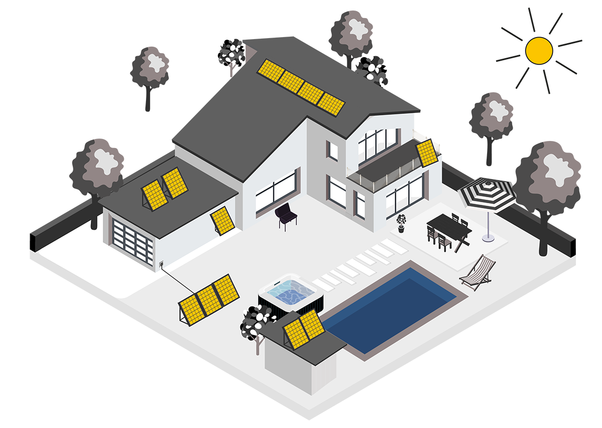 Prenez le contrôle de votre production d'énergie verte en toute simplicité. Choisissez le lieu d'installation et la quantité de panneaux solaires adaptée à vos besoins... sans frais de pose !